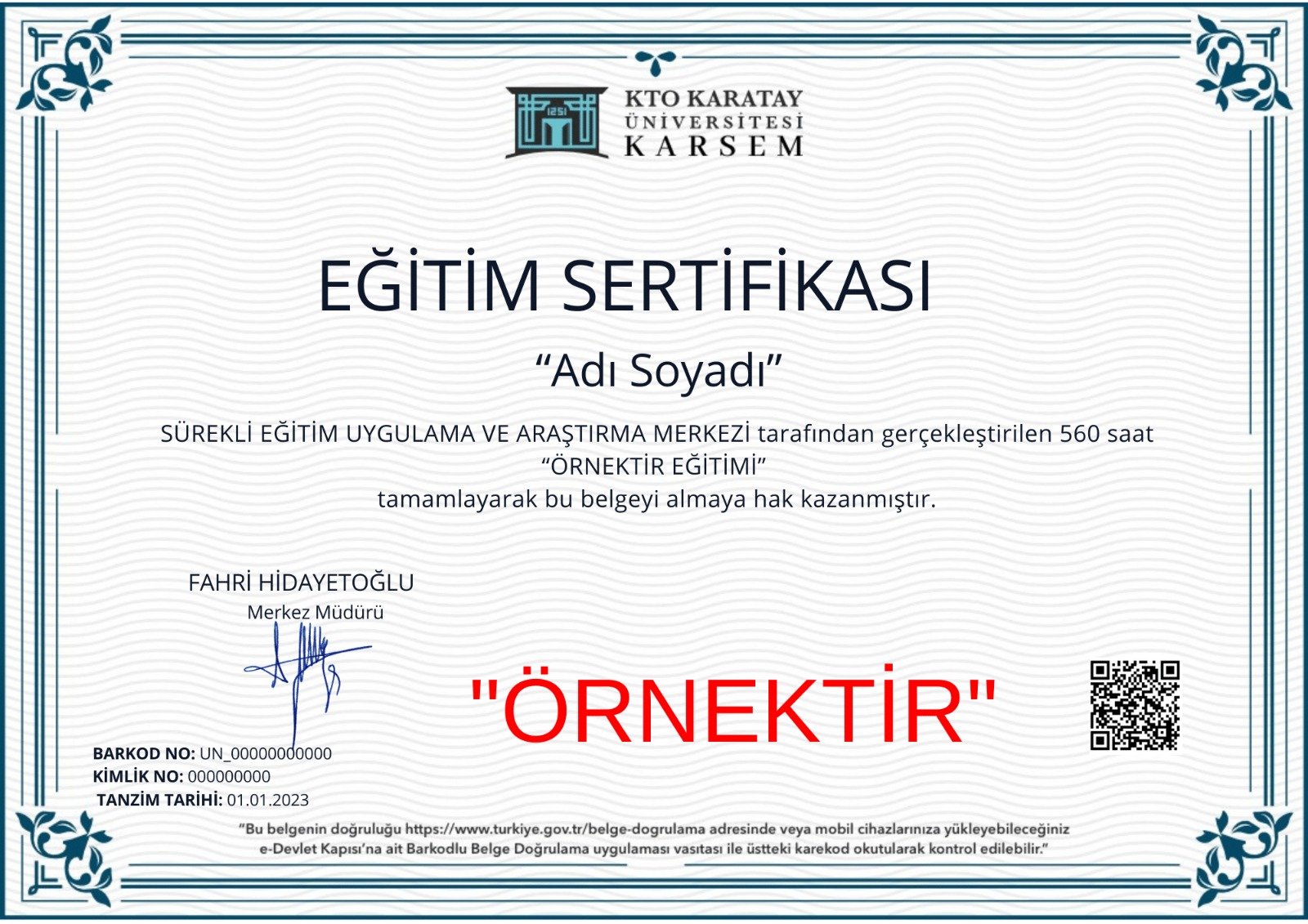 KTO KARATAY ÜNİVERSİTESİ SÜREKLİ EĞİTİM MERKEZİ MÜDÜRLÜĞÜ TARAFINDAN ONAYLANAN SORGULANABİLEN VE GÖRÜNTÜLENEN ONAYLI SERTİFİKALAR